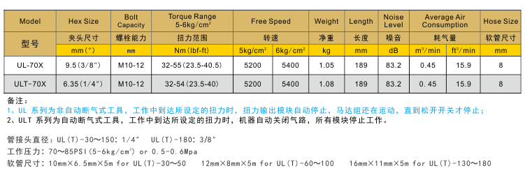 可調(diào)氣動(dòng)扳手UL-70X/ULT-70X