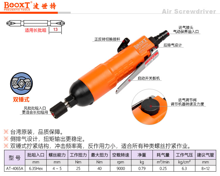 東莞市強勁五金工具有限公司提供臺灣BOOXT波世特品牌氣動工具,直型風批AT-4065A廠家直銷,首件享特價。咨詢熱線:4008301980