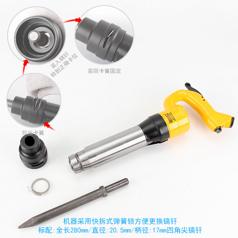 • 產(chǎn)品用途: 配合不同規(guī)格的鏟頭或鎬尖,去除各種附著物如涂料、鐵銹、焊漬、 鑄件剝離、清除水泥、涵洞巖石破碎等作業(yè)?!竟I(yè)型】