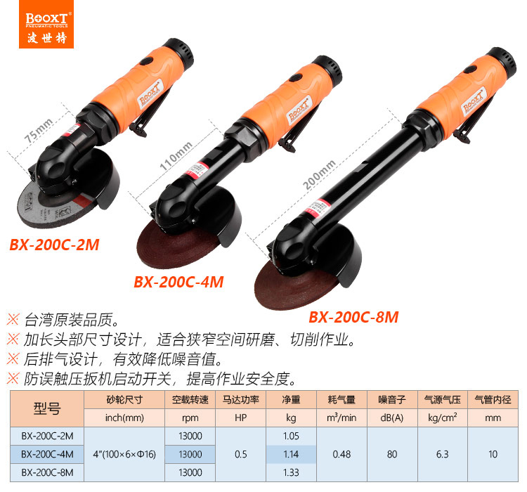 東莞市強勁五金工具有限公司提供臺灣BOOXT波世特品牌氣動工具,氣動角磨機BX-200C-4M廠家直銷,首件享特價。咨詢熱線:4008301980