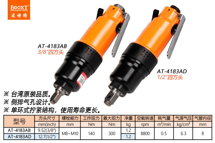東莞市強勁五金工具有限公司提供臺灣BOOXT波世特品牌氣動工具,氣動扳手AT-4183AD廠家直銷,首件享特價。咨詢熱線:4008301980