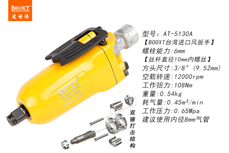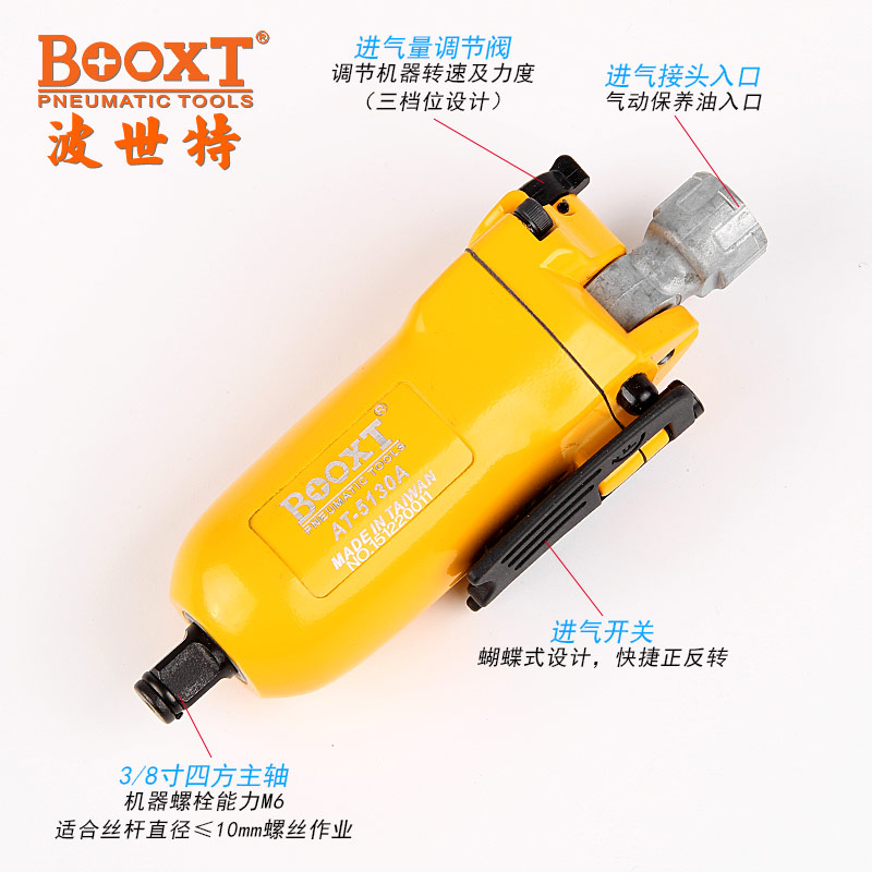 東莞市強勁五金工具有限公司提供臺灣BOOXT波世特品牌氣動工具,蝶形開關(guān)氣動扳手AT-5130A廠家直銷,首件享特價。咨詢熱線:4008301980