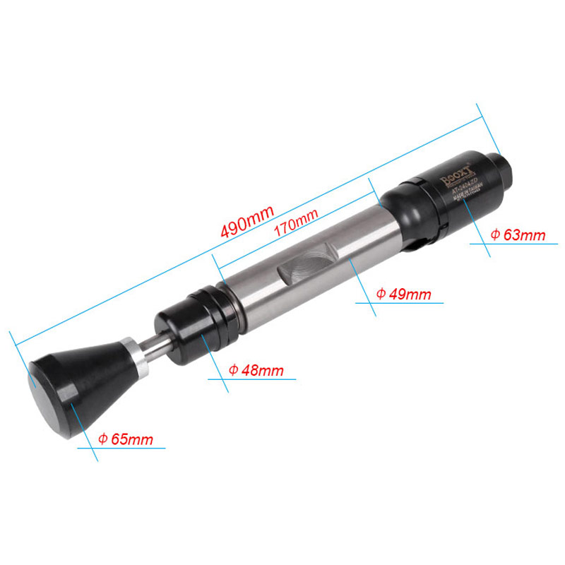 • 產(chǎn)品參數(shù): 活塞直徑:25.4mm 活塞沖程:100mm 沖擊頻率:800bpm 全 長:490mm 凈 重:5.7kg 耗 氣 量:0.7m3/min 【自動化用】