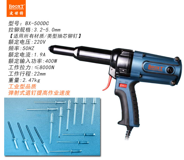 東莞市強(qiáng)勁五金工具有限公司提供臺(tái)灣BOOXT波世特品牌五金工具,電動(dòng)抽芯拉釘槍BX-500CD廠家直銷,首件享特價(jià)。咨詢熱線:4008301980