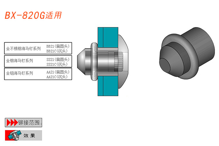 4.品種齊全,適合不同規(guī)格,不同強度的鉚釘。