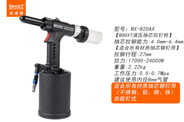 東莞市強(qiáng)勁五金工具有限公司提供臺灣BOOXT波世特品牌氣動工具,自吸釘氣動鉚釘槍BX-820AX廠家直銷,首件享特價。咨詢熱線:4008301980