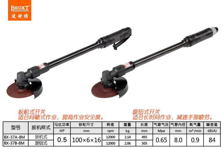 東莞市強(qiáng)勁五金工具有限公司提供臺(tái)灣BOOXT波世特品牌氣動(dòng)工具,加長(zhǎng)氣動(dòng)角磨機(jī)BX-37B-8M廠家直銷,首件享特價(jià)。咨詢熱線:4008301980