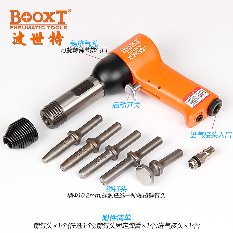東莞市強勁五金工具有限公司提供臺灣BOOXT波世特品牌氣動工具,氣動鉚釘錘BT-2203G廠家直銷,首件享特價。咨詢熱線:4008301980