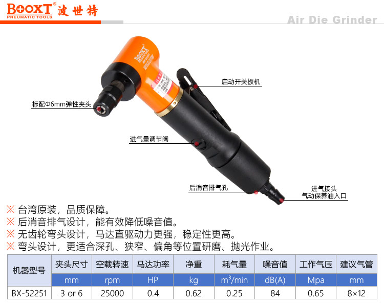 東莞市強(qiáng)勁五金工具有限公司提供臺灣BOOXT波世特品牌氣動工具,風(fēng)磨機(jī)BX-52251廠家直銷,首件享特價。咨詢熱線:4008301980