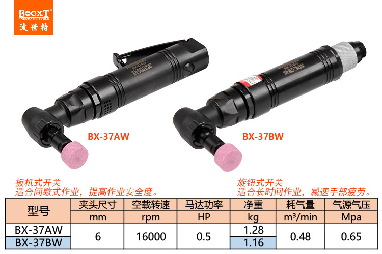 東莞市強勁五金工具有限公司提供臺灣BOOXT波世特品牌氣動工具,彎頭風磨機BX-37AW廠家直銷,首件享特價。咨詢熱線:4008301980