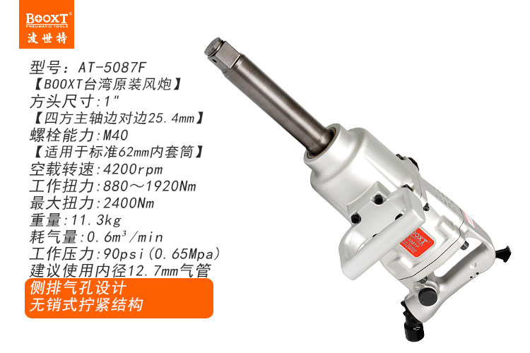 東莞市強(qiáng)勁五金工具有限公司提供臺(tái)灣BOOXT波世特品牌氣動(dòng)工具,無銷式風(fēng)炮AT-5087F廠家直銷,首件享特價(jià)。咨詢熱線:4008301980