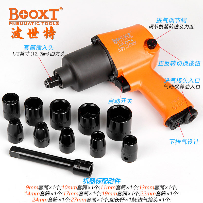 東莞市強勁五金工具有限公司提供臺灣BOOXT波世特品牌氣動工具,套裝氣動扳手BX-283AT廠家直銷,首件享特價。咨詢熱線:4008301980