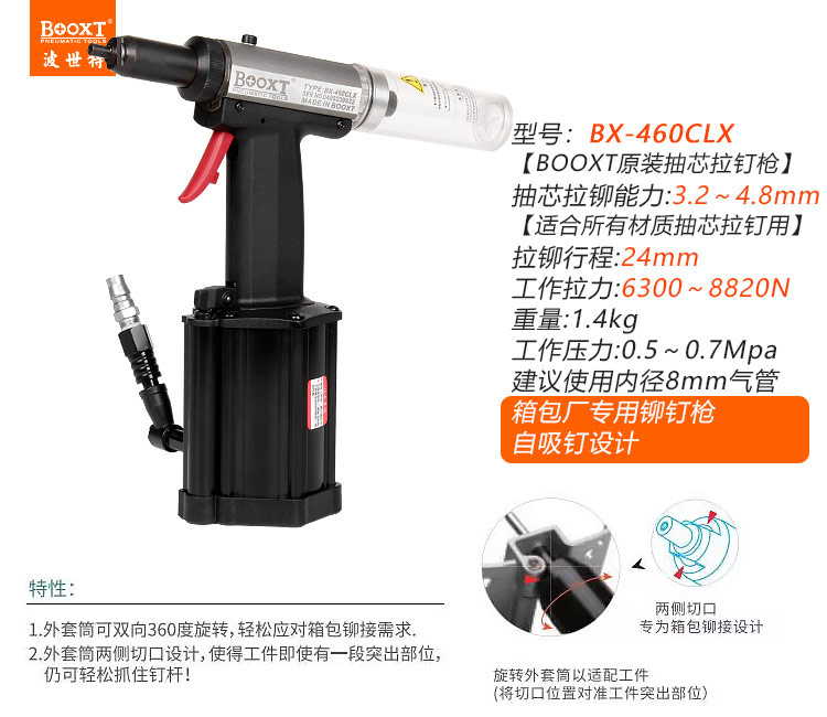 東莞市強(qiáng)勁五金工具有限公司提供臺(tái)灣BOOXT波世特品牌氣動(dòng)工具,氣動(dòng)拉鉚釘槍BX-460CLX廠家直銷,首件享特價(jià)。咨詢熱線:4008301980