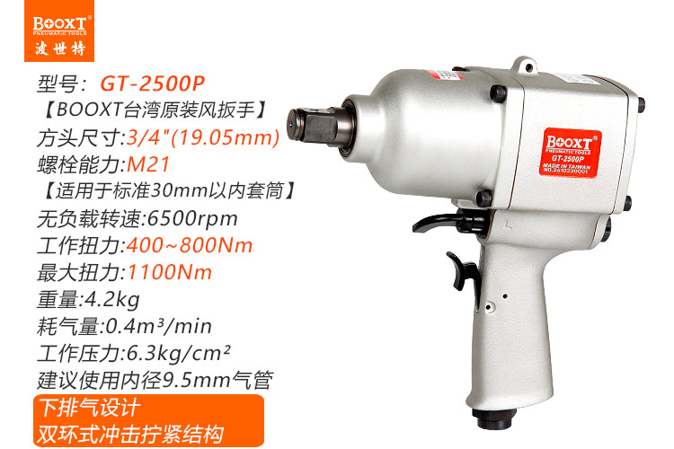 東莞市強(qiáng)勁五金工具有限公司提供臺(tái)灣BOOXT波世特品牌氣動(dòng)工具,工業(yè)級(jí)中風(fēng)炮GT-2500P廠家直銷,首件享特價(jià)。咨詢熱線:4008301980