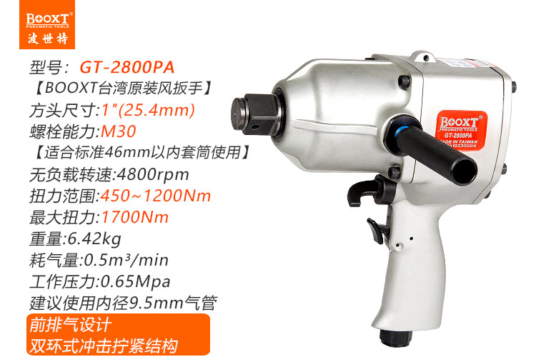 東莞市強勁五金工具有限公司提供臺灣BOOXT波世特品牌氣動工具,1寸氣動扳手GT-2800PA廠家直銷,首件享特價。咨詢熱線:4008301980