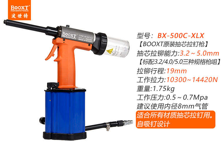 東莞市強(qiáng)勁五金工具有限公司提供臺(tái)灣BOOXT波世特品牌氣動(dòng)工具,加長(zhǎng)氣動(dòng)鉚釘槍BX-500C-XL廠家直銷,首件享特價(jià)。咨詢熱線:4008301980