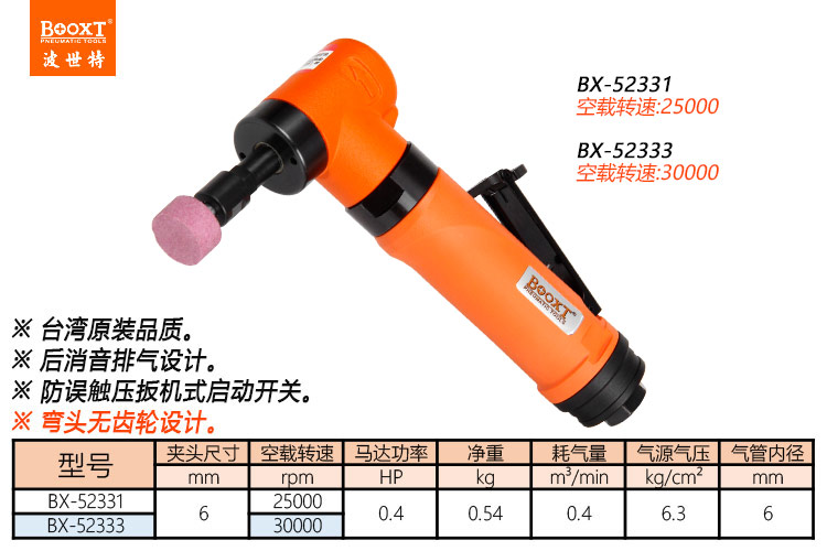 東莞市強(qiáng)勁五金工具有限公司提供臺(tái)灣BOOXT波世特品牌氣動(dòng)工具,彎頭風(fēng)磨機(jī)BX-52331廠家直銷,首件享特價(jià)。咨詢熱線:4008301980