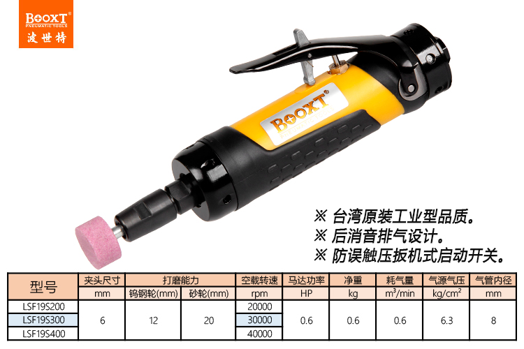 東莞市強(qiáng)勁五金工具有限公司提供臺灣BOOXT波世特品牌氣動工具,30000轉(zhuǎn)氣動打磨機(jī)LSF19-S300廠家直銷,首件享特價。咨詢熱線:4008301980