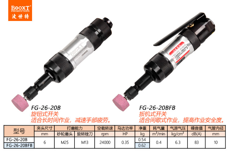 東莞市強(qiáng)勁五金工具有限公司提供臺(tái)灣BOOXT波世特品牌氣動(dòng)工具,高精度風(fēng)磨機(jī)FG-26-20B廠家直銷,首件享特價(jià)。咨詢熱線:4008301980