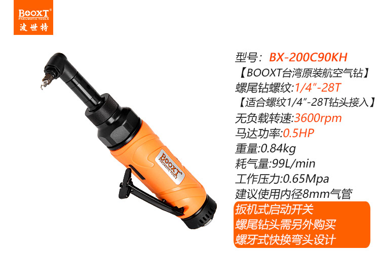 東莞市強(qiáng)勁五金工具有限公司提供臺(tái)灣BOOXT波世特品牌氣動(dòng)工具,彎頭螺尾柄氣鉆BX-200C90KH廠家直銷,首件享特價(jià)。咨詢熱線:4008301980