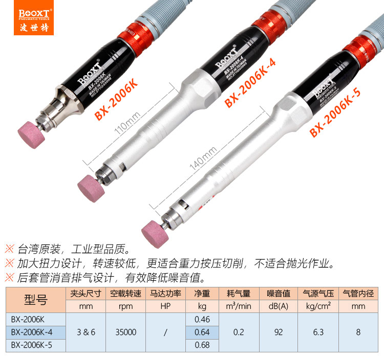 東莞市強(qiáng)勁五金工具有限公司提供臺(tái)灣BOOXT波世特品牌氣動(dòng)工具,加長氣動(dòng)打磨筆BX-2006K-4廠家直銷,首件享特價(jià)。咨詢熱線:4008301980