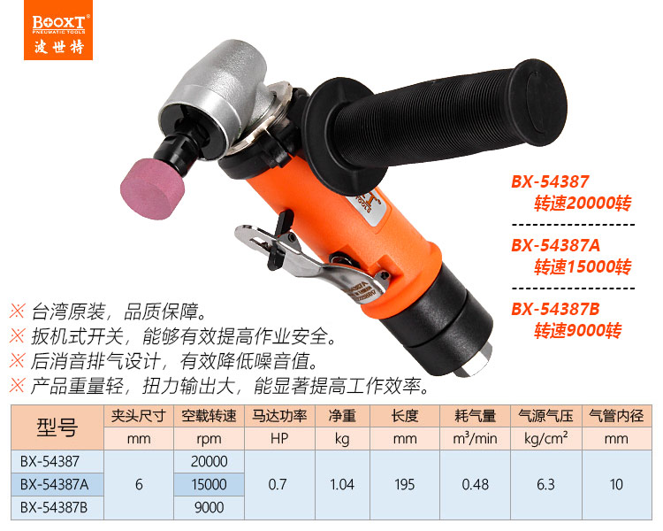東莞市強(qiáng)勁五金工具有限公司提供臺(tái)灣BOOXT波世特品牌氣動(dòng)工具,彎頭風(fēng)磨機(jī)BX-54387A廠家直銷,首件享特價(jià)。咨詢熱線:4008301980