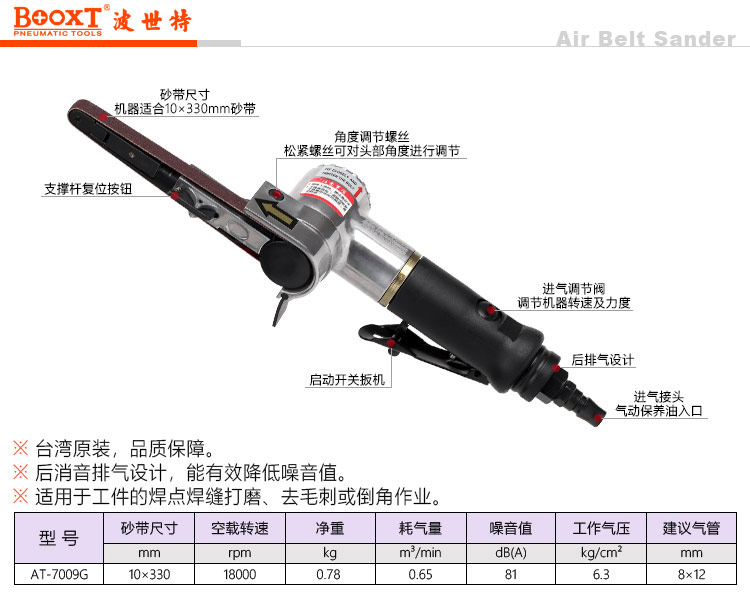 東莞市強(qiáng)勁五金工具有限公司提供臺灣BOOXT波世特品牌氣動工具,AT-7009G圓手柄氣動砂帶機(jī)廠家直銷,首件享特價(jià)。服務(wù)熱線:4008301980