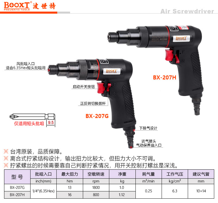 東莞強勁五金工具有限公司提供臺灣BOOXT波世特氣動工具,離合器氣動螺絲刀BX-207H廠家直銷,首件享特價。咨詢熱線:4008301980