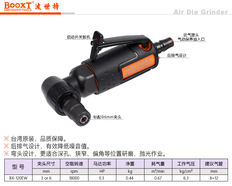 東莞市強(qiáng)勁五金工具有限公司提供臺(tái)灣BOOXT波世特品牌氣動(dòng)工具,超短彎頭風(fēng)磨機(jī)BX-120EW廠家直銷,首件享特價(jià)。咨詢熱線:4008301980