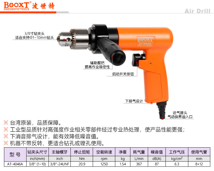 東莞市強(qiáng)勁五金工具有限公司提供臺(tái)灣BOOXT波世特品牌氣動(dòng)工具,大扭力氣動(dòng)鉆AT-4046A廠(chǎng)家直銷(xiāo),首件享特價(jià)。咨詢(xún)熱線(xiàn):4008301980