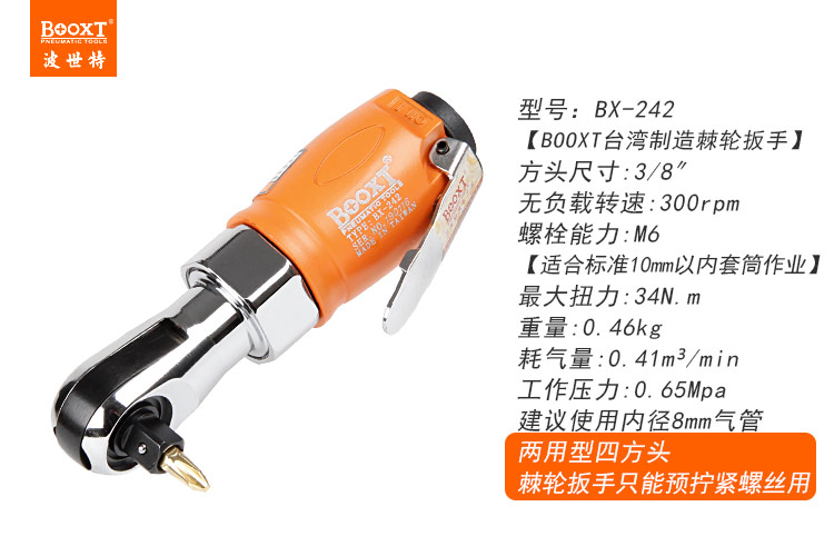 東莞市強(qiáng)勁五金工具有限公司提供臺灣BOOXT波世特品牌氣動工具,氣動棘輪扳手BX-242廠家直銷,首件享特價。咨詢熱線:4008301980