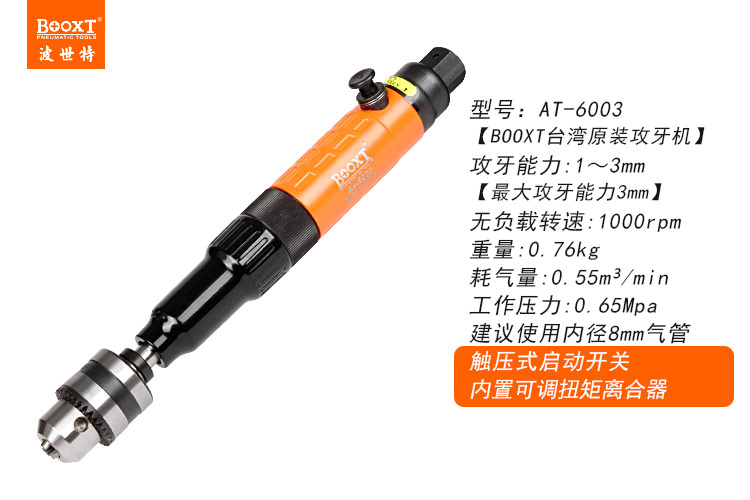 東莞市強勁五金工具有限公司提供臺灣BOOXT波世特品牌氣動工具,細牙氣動攻絲機AT-6003廠家直銷,首件享特價。咨詢熱線:4008301980